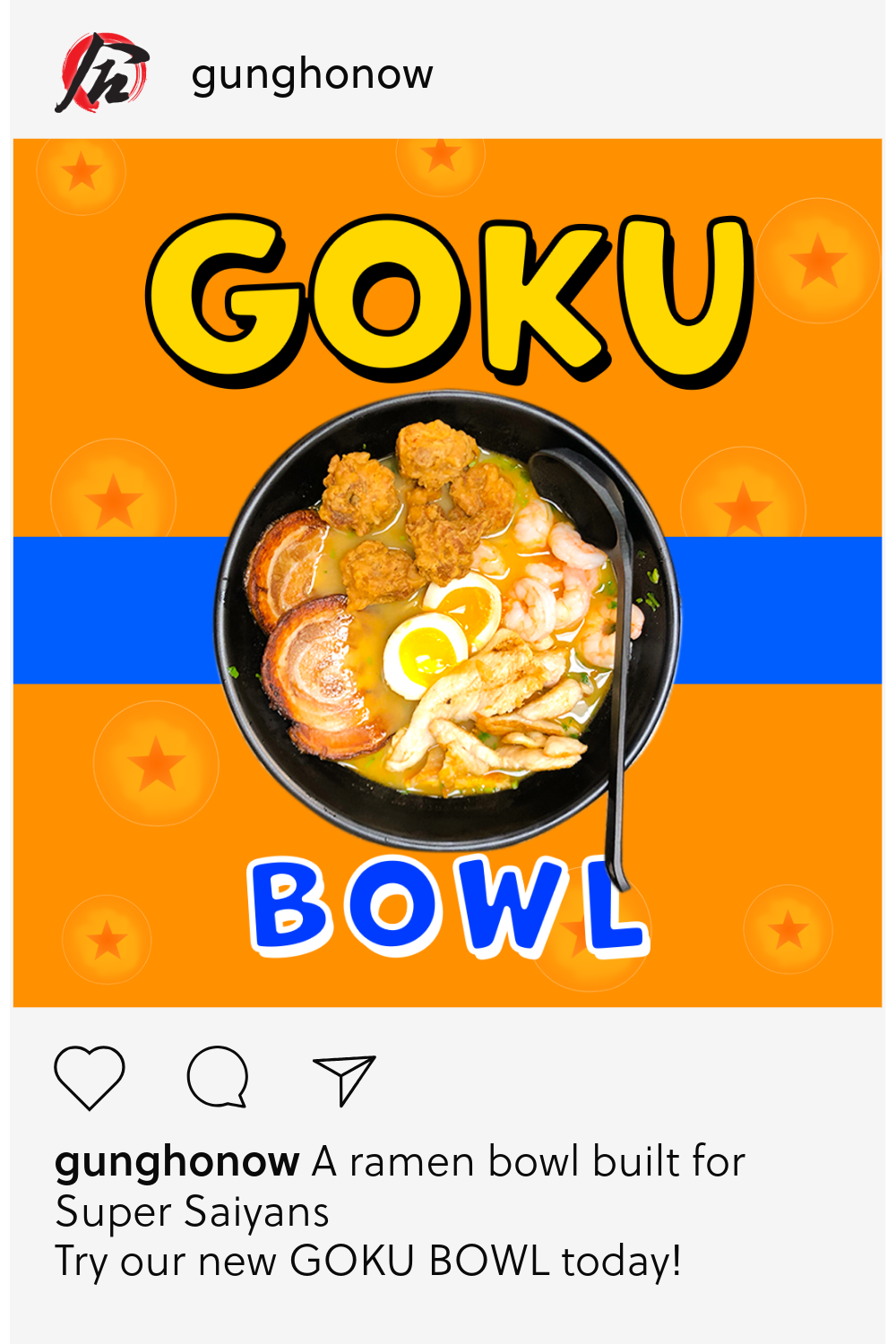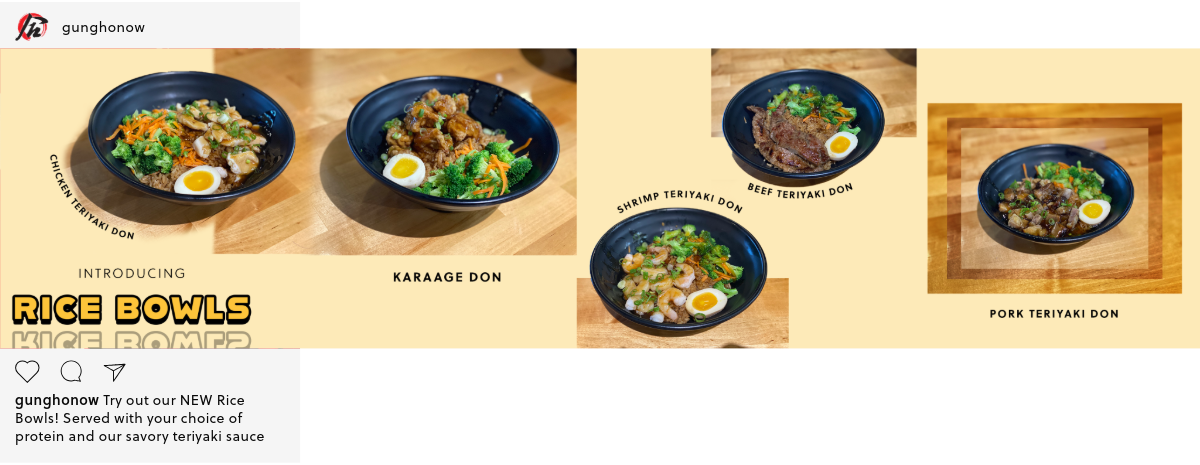 1. Tasty Food: Present Gung Ho’s delicious menu – ramen, poke bowls, boba milk tea, etc.