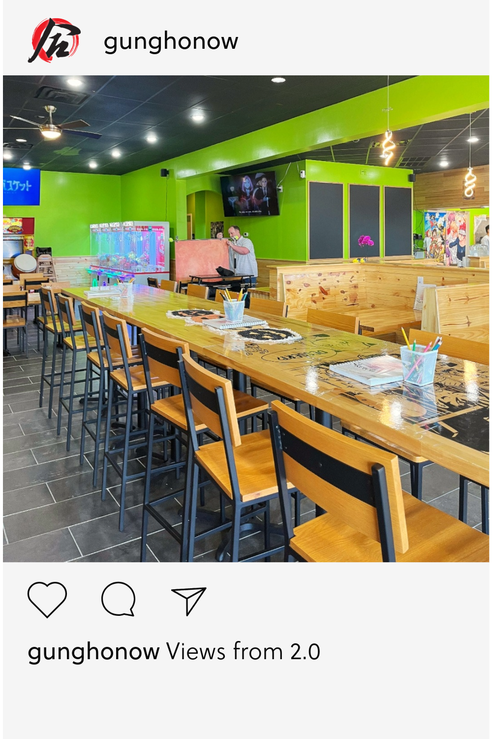 3. Lively Vibe: Capture Gung Ho’s restaurant lively environment by showcasing the fun designs, artwork, and features.